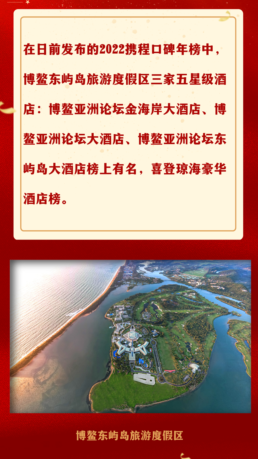 喜报!博鳌东屿岛旅游度假区三家酒店荣登携程口碑榜